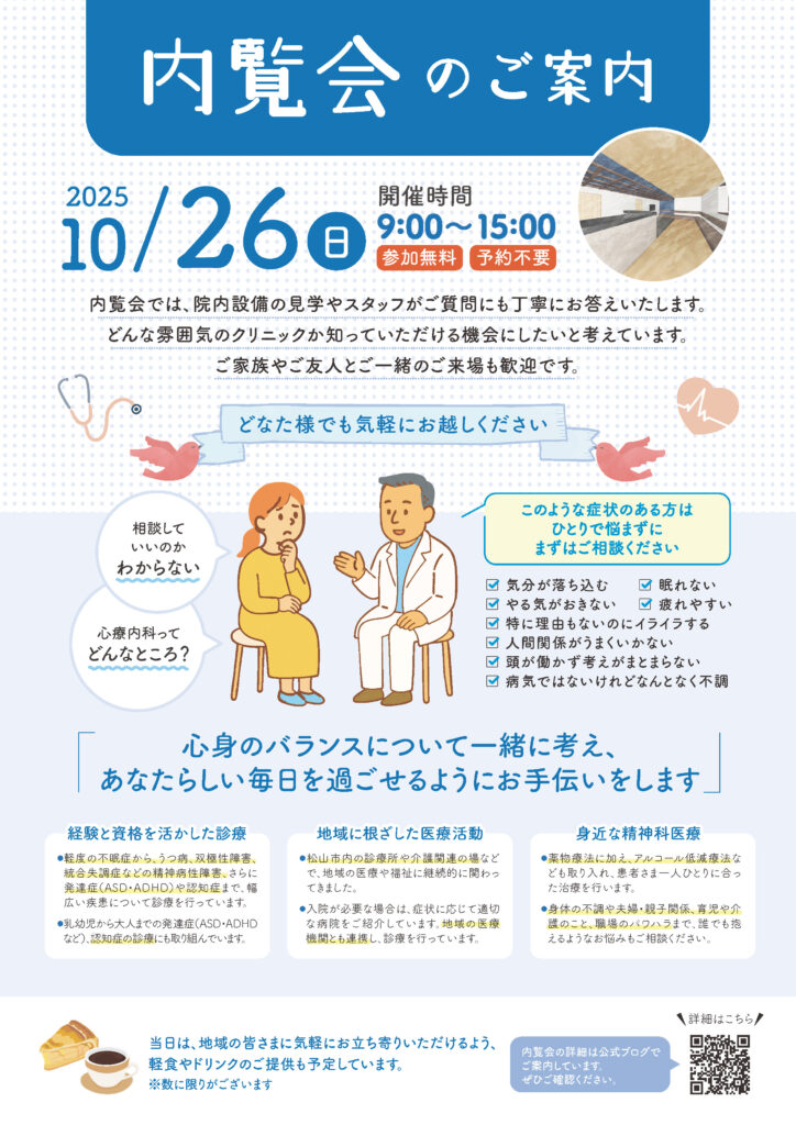 「どんな雰囲気のクリニックなのか知りたい」という方にとっても、気軽に覗いていただける良い機会です。